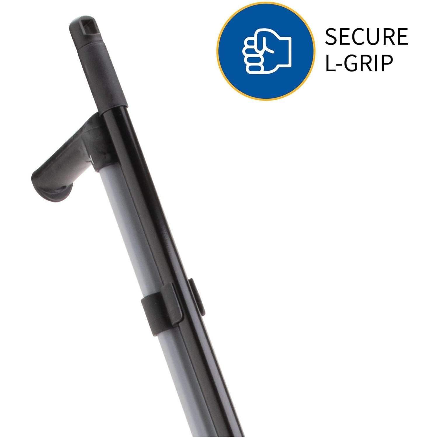 Plastic lobby dust pan combo kit with broom features easy lock two way ergonomically designed L grip 32" high handle that can lock in an upright position. Combo kit handle provides convenient hanging hole and handy clip that allows broom to be attached.