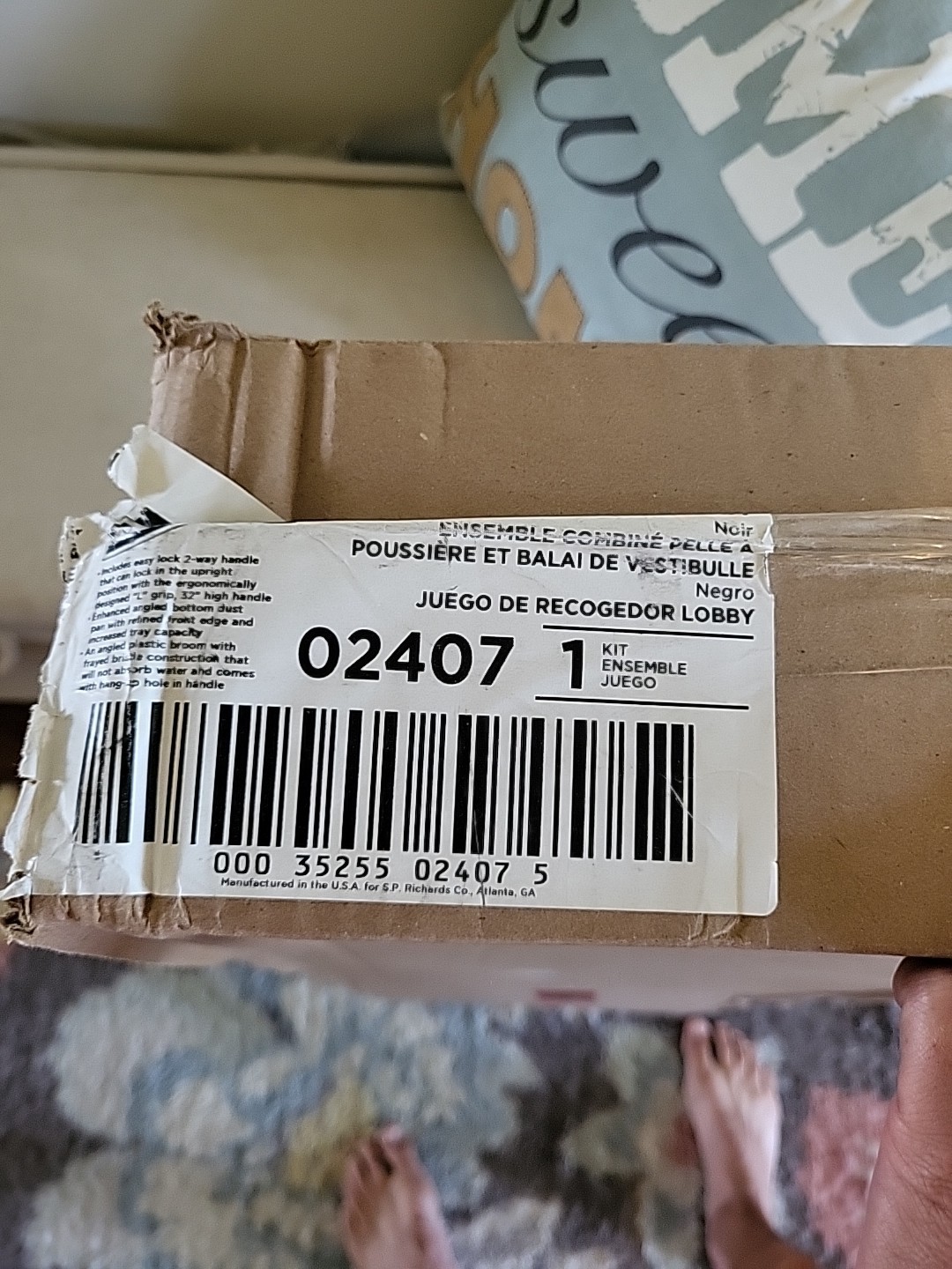 Black. Offers enhanced angled bottom dust pan with increased tray capacity and refined front edge for maximum pickup. Package contents: Innovative foot rest pads, angled plastic broom with frayed bristle construction.