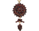 - Genuine Natural Bohemian Garnet Rosette Pendant w/2 Tier Drop 18" Chain (#J7404)