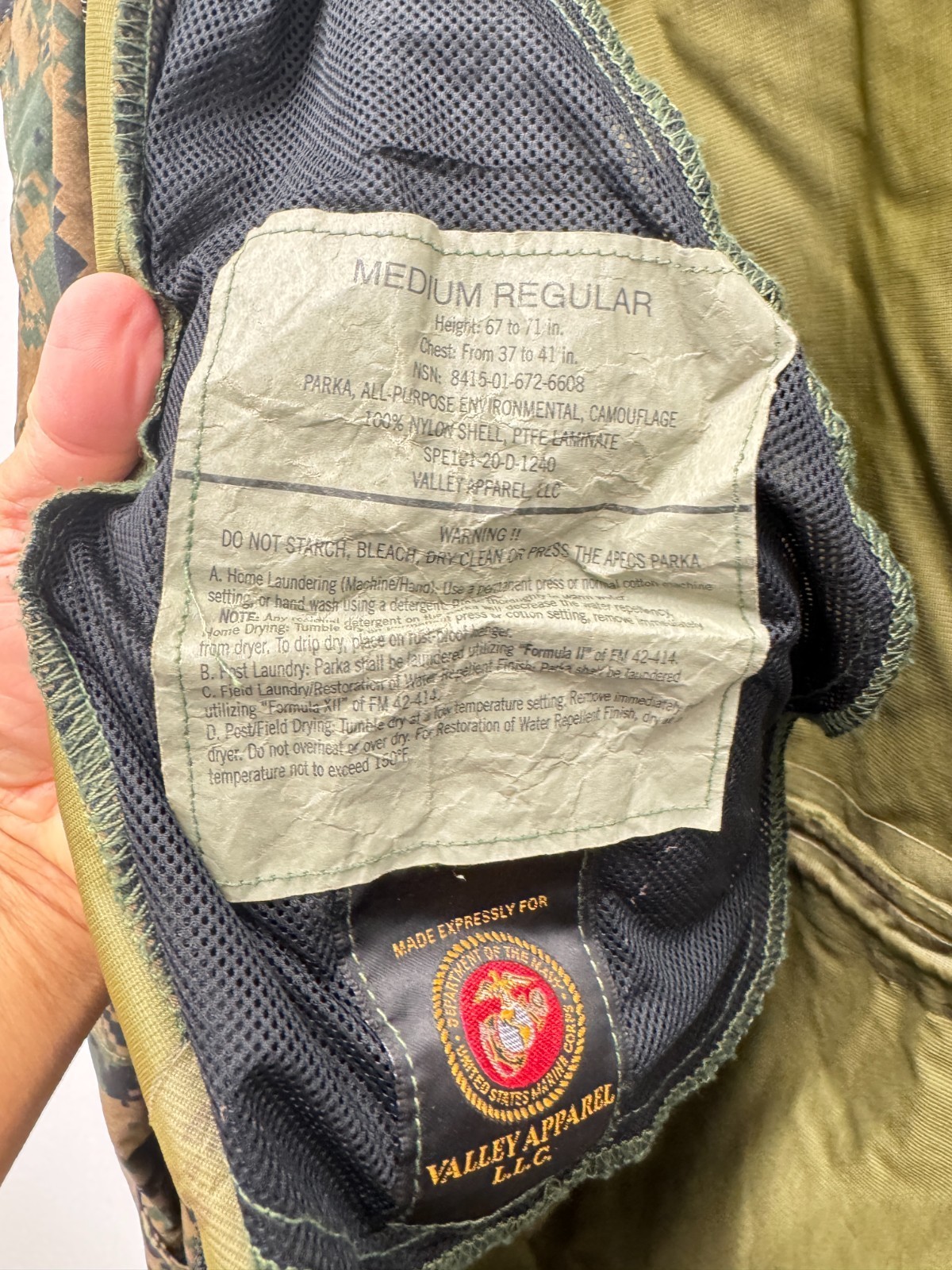Genuine Usmc Gen II Apecs Gore Tex Digital Marpat Woodland Cold Weather Parka.