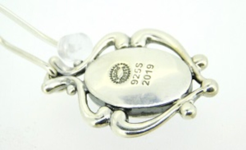 Art Nouveau Georg Jensen sterling dangle Heritage 2019 edition earrings. The earrings feature oval lilac quartz gemstones that each measure approximately 13mm long x 9.5mm wide. The earrings are suspended from a silver hook, made for pierced ears. Each earring measures 1 OE? long, each weigh 2.0 dwt., and the set is new in box. Lovely!