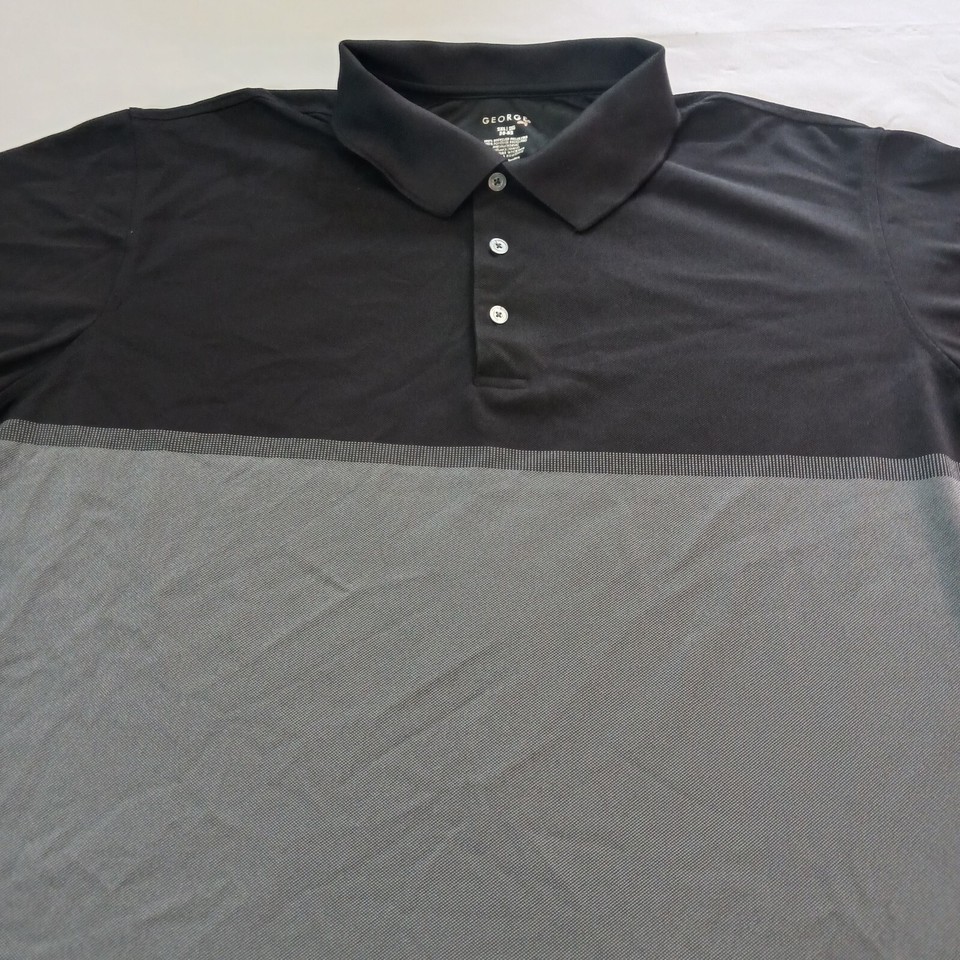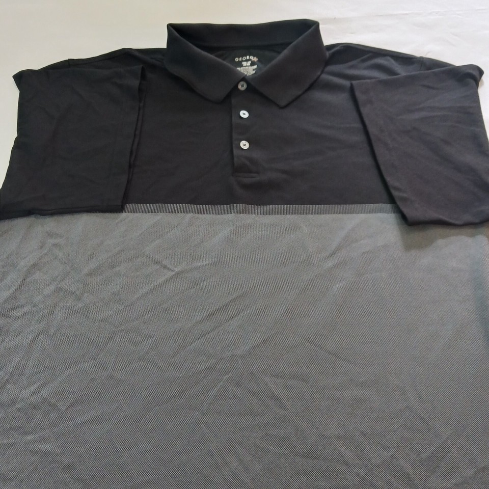 George 3-Button Men's Black & Gray Polo Shirt Short Sleeve Size 2XL