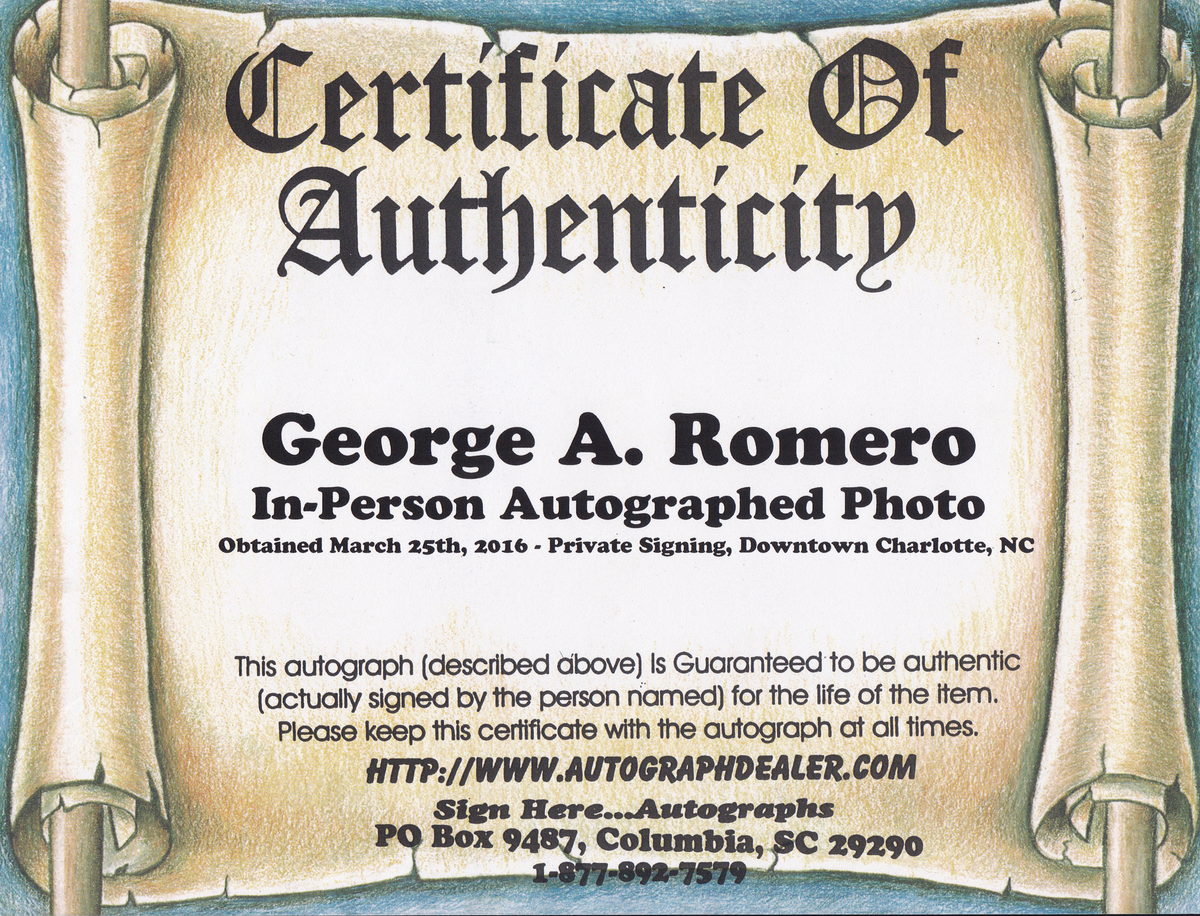 George A Romero Authentic In-Person autographed 8x10 photo COA proof
