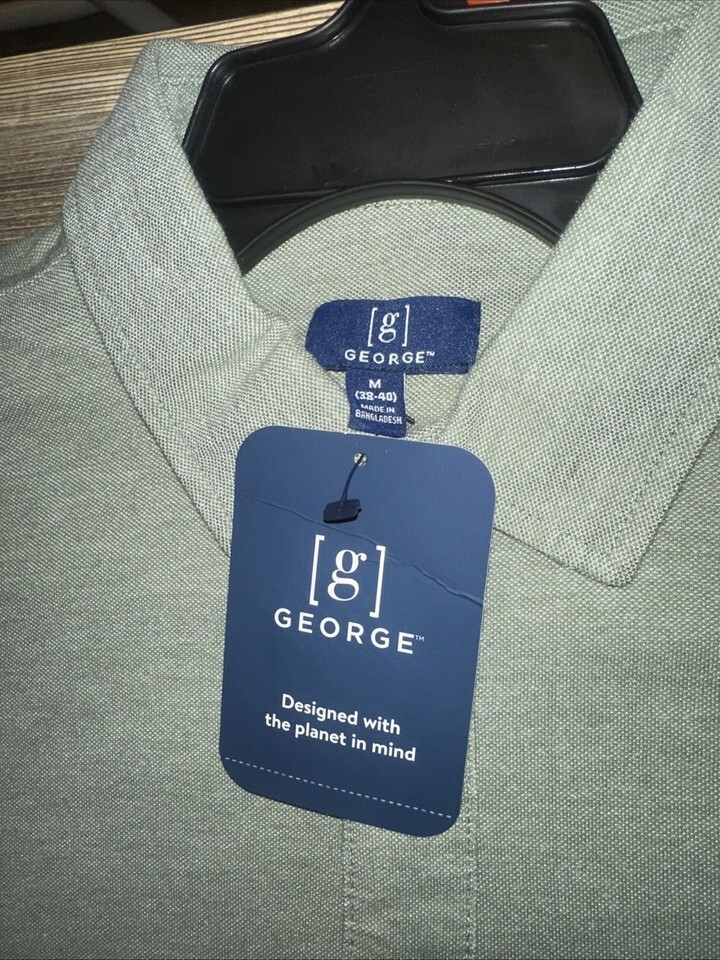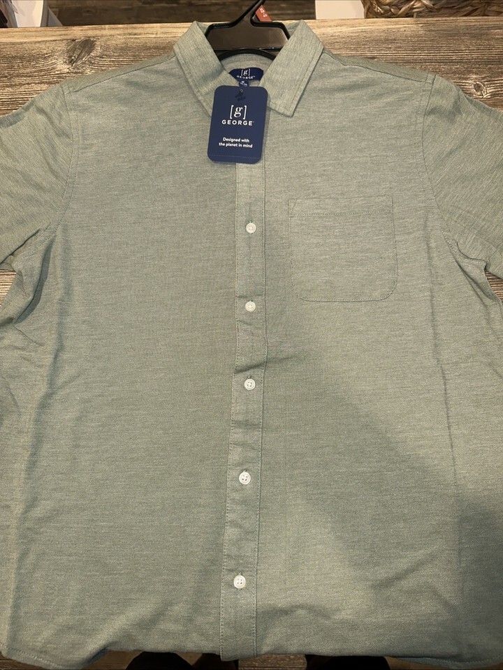 - George Big Men's Knit Button-Up Shirt with Short Sleeves & Front Pocket, Sz Med