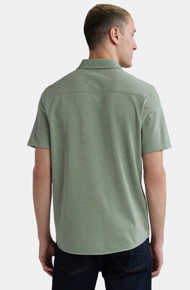 The George Big Men's Knit Button-Up Shirt is a stylish and versatile piece suitable for various occasions such as travel, casual wear, and workwear. Made from lightweight cotton knit fabric, it features a solid green color with a collared neckline and short sleeves, providing a classic and colorful look. This shirt is machine washable, making it easy to care for, and includes a front pocket for added functionality. With a regular fit and spread collar style, it is a comfortable and practical choice for the winter, fall, and spring seasons.