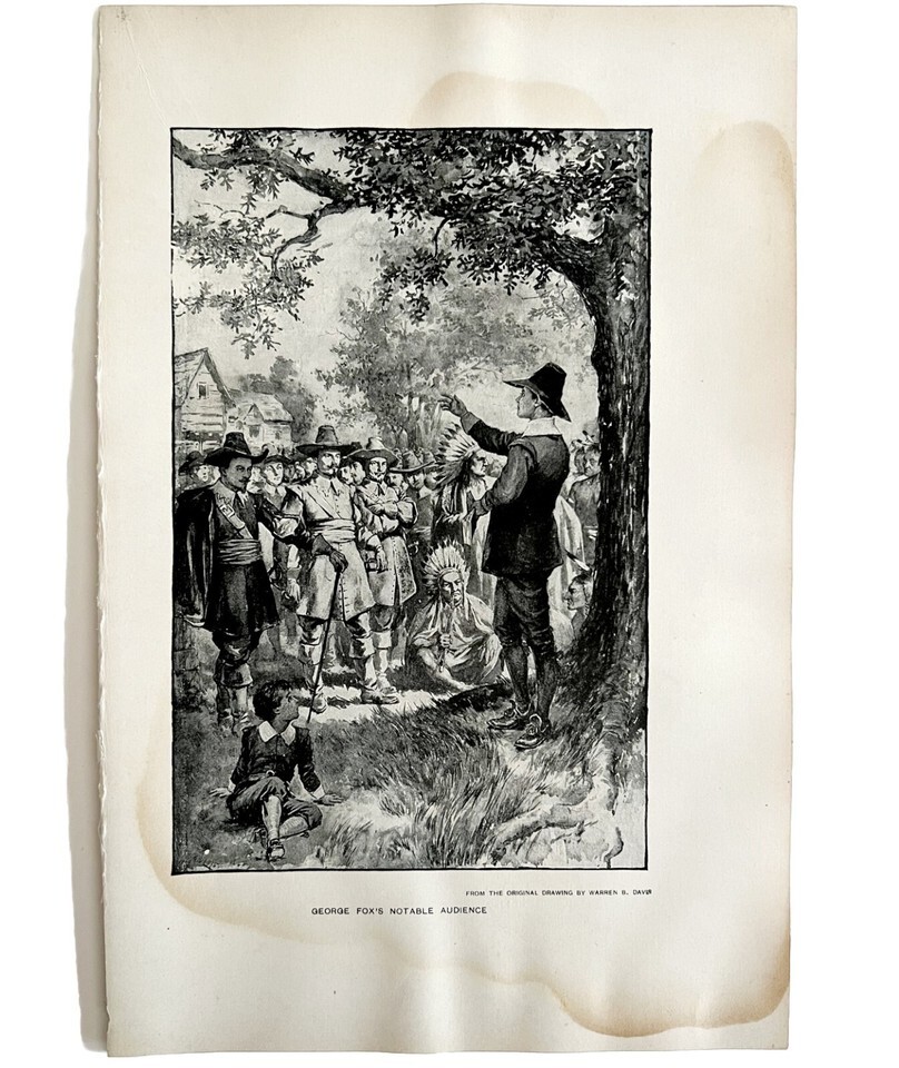 - George Fox With Audience 1899 Victorian American History Art Ephemera DWZ2