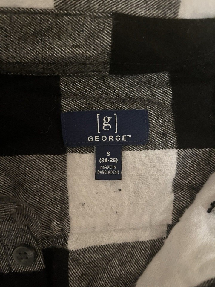 - George Men’s Flannel Shirt Black & White Plaid Size S Long Sleeve Button Down