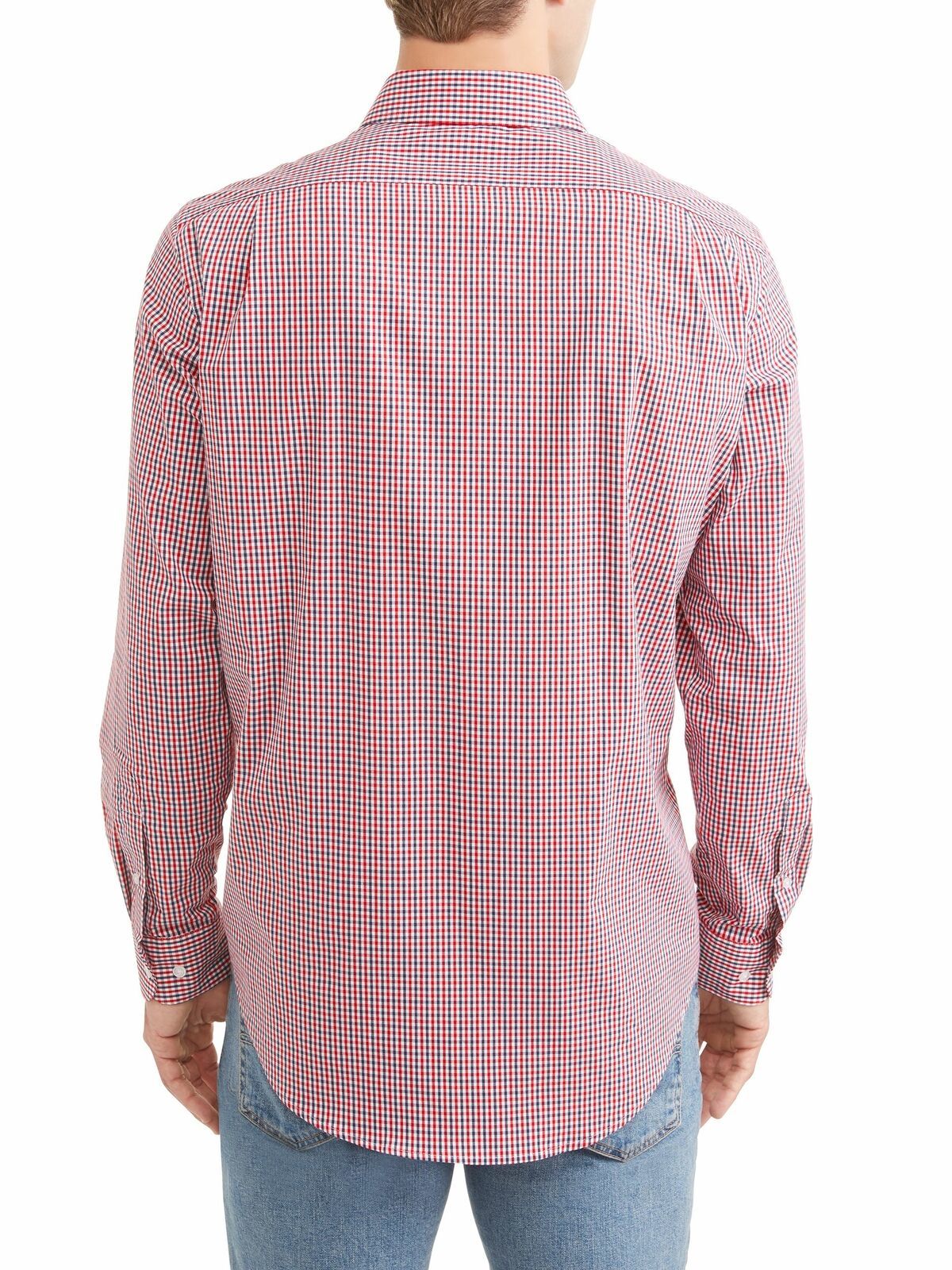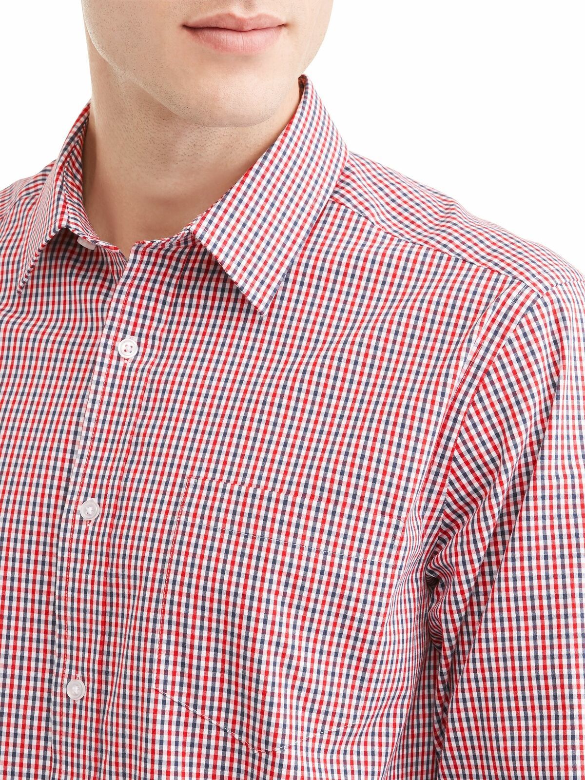 - George Men's Flex Dress Shirt Color Red Check Size L (LOC TUB L-45)