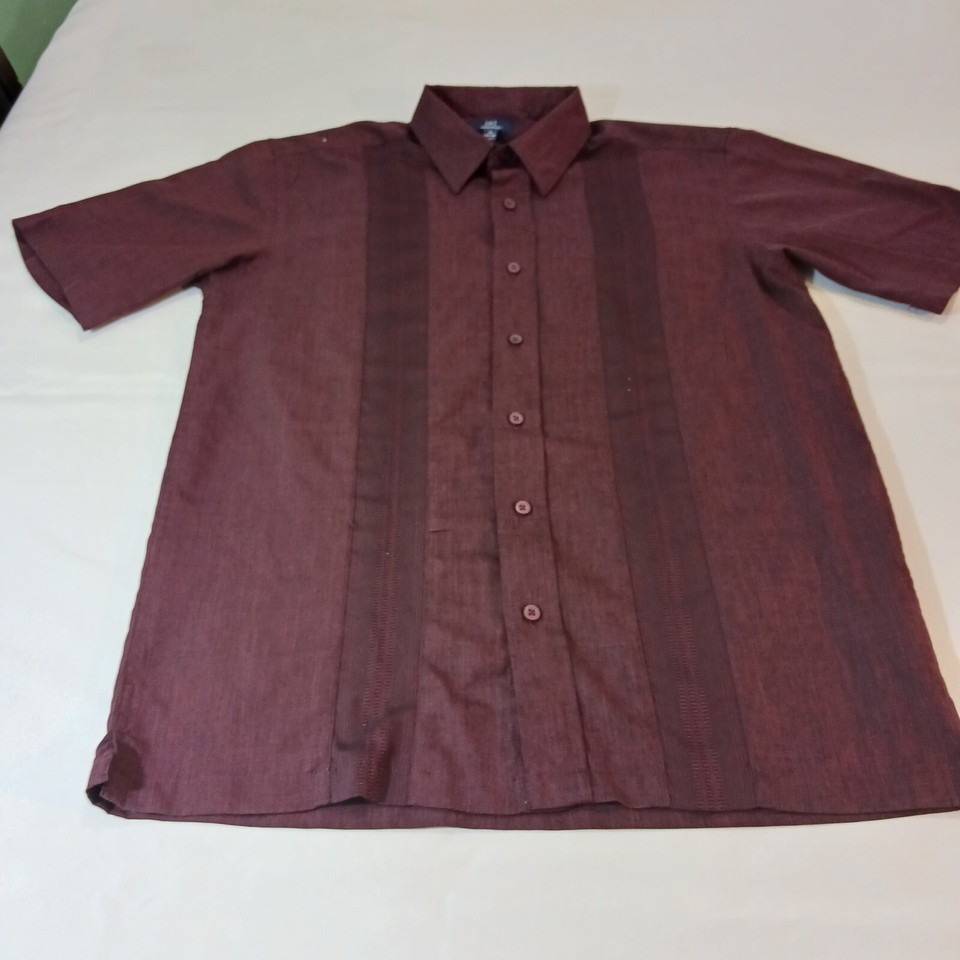 - George RN#52469 Men's Burgundy Button Up Short Sleeve Shirt Size M (38-40)