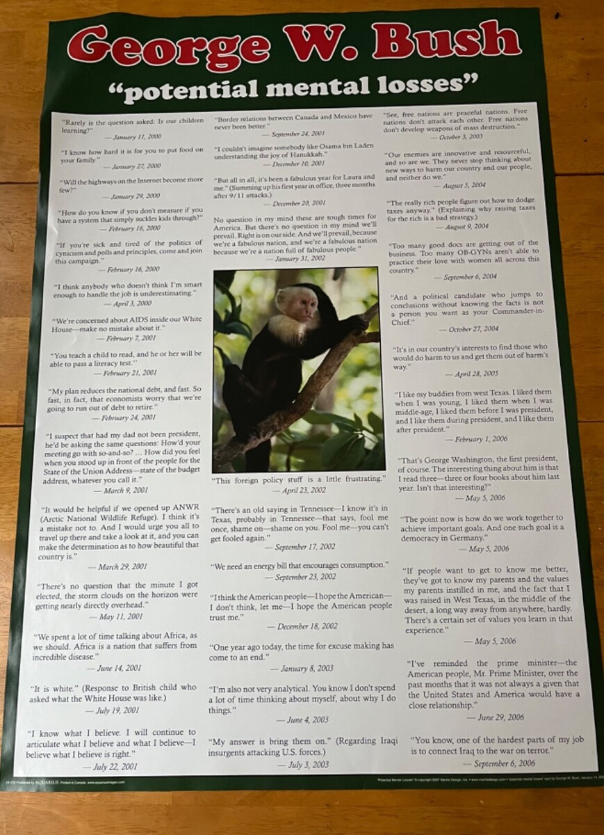 George W Bush Potential Mental Losses Large Poster College Collection Wall Room
