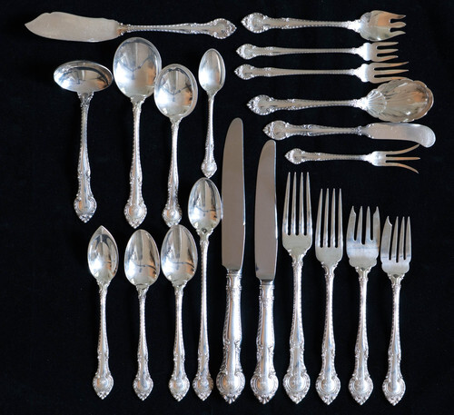 COMPLETE FLATWARE SETHOSTESS HELPERSHOLLOWWARE / TEA SETSMUSEUM QUALITY/FIGURAL SILVERFINE ESTATE VINTAGE JEWELRYMID-CENTURY MODERNSILVER FLATWARE SILVERWAREBuccellatiChristofleGeorg JensenNew Georg Jensen HollowwareNew Georg Jensen JewelryGorhamInternationalLuntMichael Aram - NewReed BartonTiffany Co.TowleWallaceWhitingPLACE SETTINGS