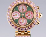 This custom designed Gerald Genta watch was created for the President of Gabon, Omar Bongo. The stunning watch features over 5 carats of pink diamonds - 28 vivid and fancy pink diamonds set in the 18K gold bezel and and 10 vivid and fancy pink diamond set in 18K gold on the green leather watch band. This is a one-of-a-kind watch for the serious collector. Gerald Charles Genta, better known by his short name (Gerald Genta) (Geneva 1931 - Monaco 2011) was a luxury watch designer and artist. He is one of the few watch designers that we know by name as he created and designed some of the most iconic and precious mechanical timepieces of the contemporary history including, Audemars Piquet, Omega, IWC, Patek Philippe and more; currently highly demanded by watch enthusiasts and collectors. Whet