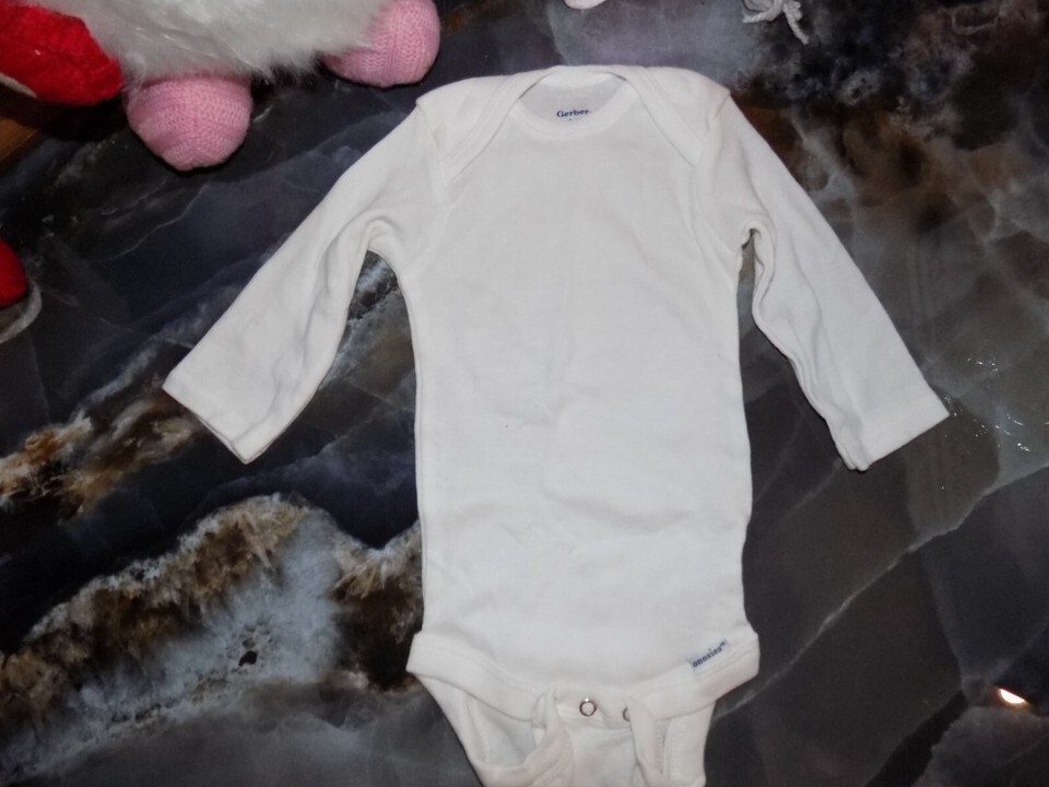 - Gerber LS White Snap Tee Bodysuit Size 3/6 Months Boy's NWOT
