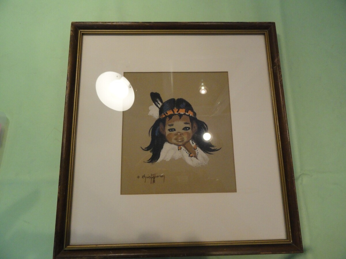 - Gerda Christoffersen Big Eyed Little Native Indian Girl Print Adorable 11x10.5