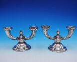 Wonderful German .830 silver pair of two-light candlesticks. The pieces measure 4" tall x 6 1/2" and are weighted. They are not monogrammed and are in good vintage condition.