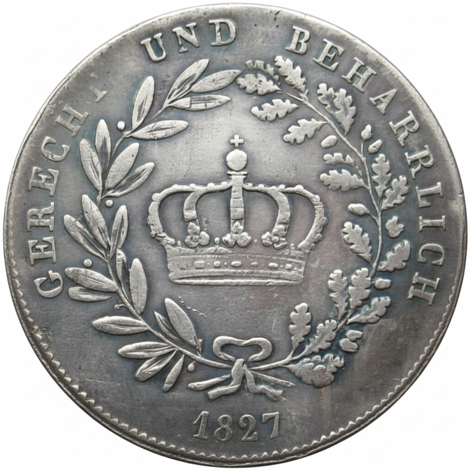 Scopri questa squisita medaglia d'arte di Ludovico I di Baviera, una notevole restrizione del 1827, che incarna un pezzo di storia reale europea. Il dritto mostra con orgoglio il busto del re Ludovico I, un monarca il cui regno ha lasciato una significativa eredita culturale e architettonica in Baviera. Il rovescio presenta una grande corona e il motto ispiratore "GERECHT UND BEHARRLICH" (Giusto e persistente), che riflette i valori della sua epoca. Questo storico pezzo commemorativo funge da oggetto unico da collezione, offrendo una connessione tangibile con la Baviera del XIX secolo. E un'aggiunta eccellente per gli appassionati di numismatica e collezionisti che cercano gettoni unici o una medaglia di fantasia per la loro esposizione. Ogni dettaglio racconta una storia, rendendola un'opera d'arte davvero preziosa. Un oggetto da collezione distintivo per qualsiasi intenditore di manufatti storici o patrimonio reale.