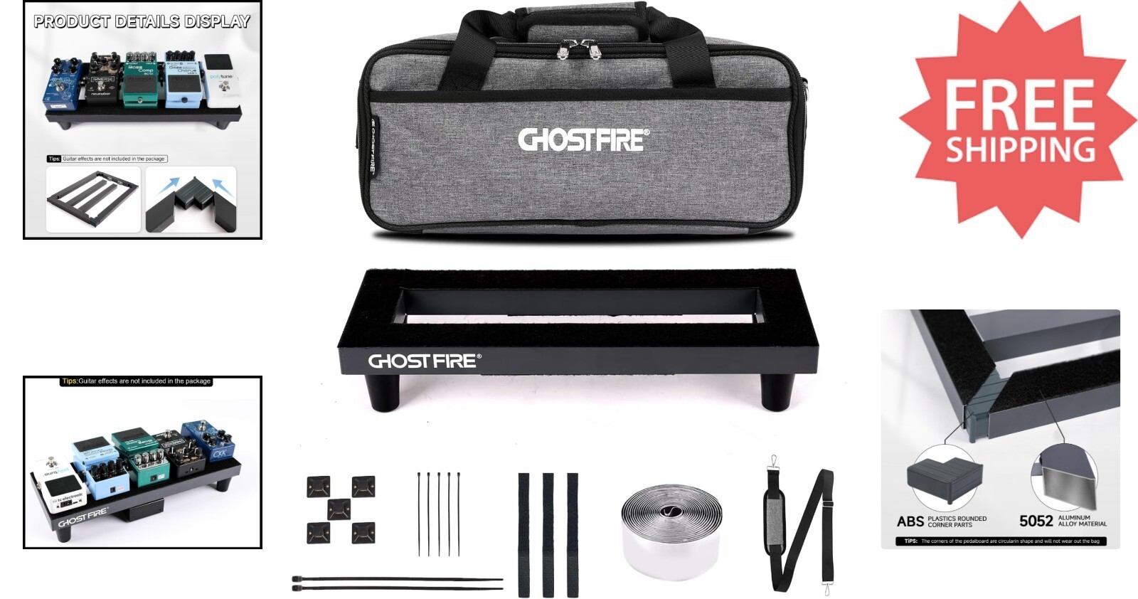 - Ghost Fire Ultra-Light Guitar Pedal Board 13.7''x5.5'' with Carry Bag - 0.8lb