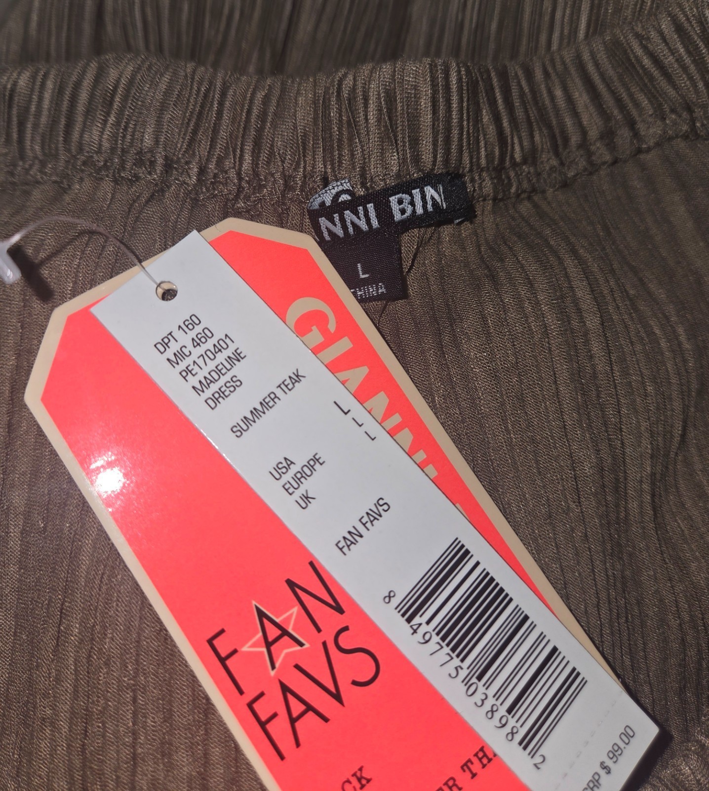 - Gianni Bini Summer Teak Off Shoulder Madeline Dress Size Large NEW Retail $99.00