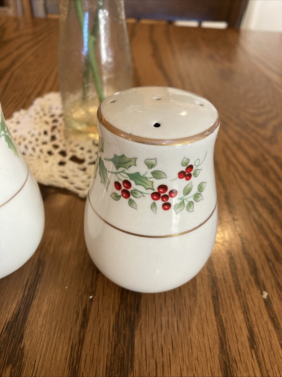 - Gibson Christmas Charm Salt & Pepper Shaker Set Holly Berries with Gold Trim