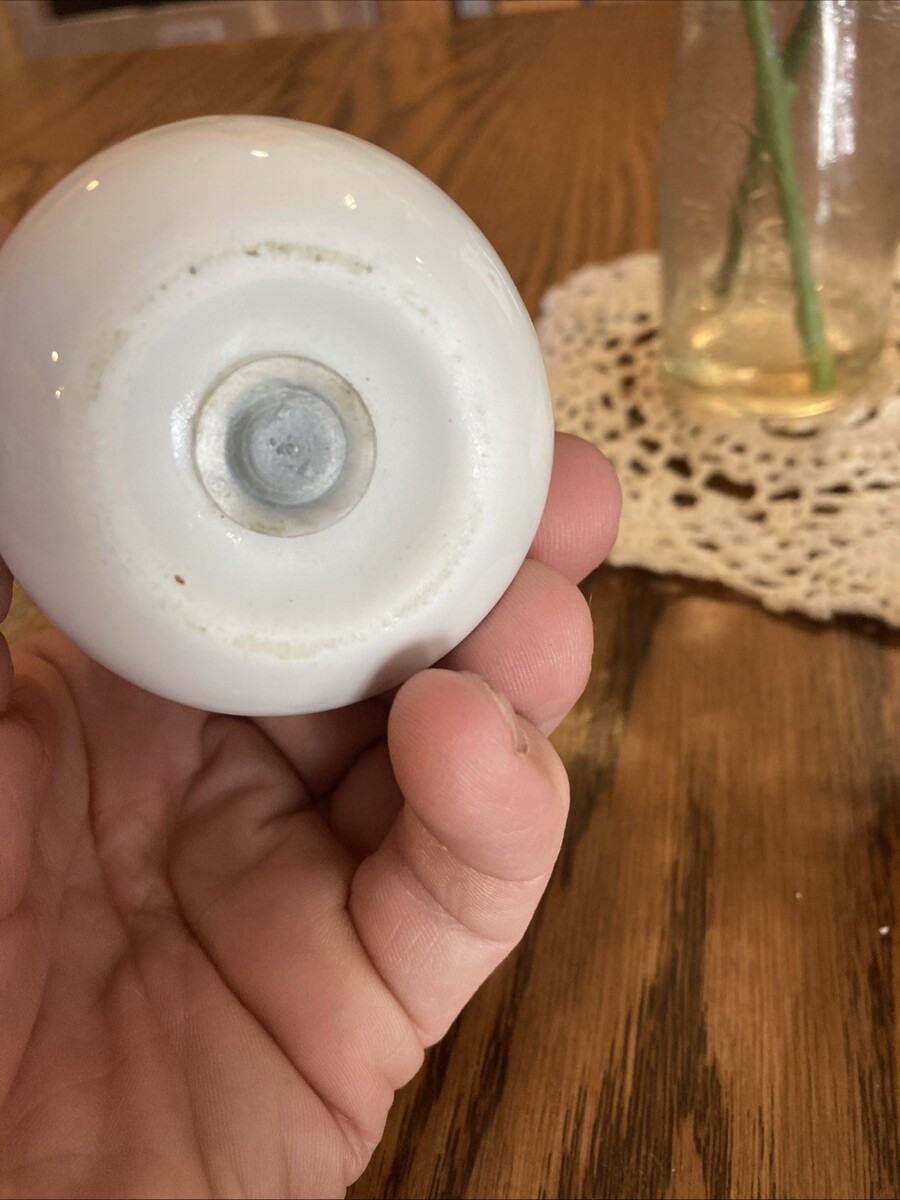 GIBSON HOLLY SALT AND PEPPER SHAKERS. THE GOLD RIM SHOWS SOME WEAR. THE PLASTIC PLUG ON THE BOTTOM IS IN GOOD SHAPE. SEE PICS.