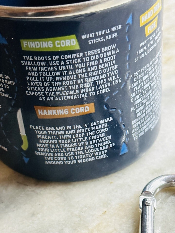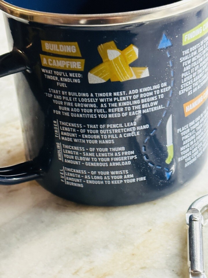 - Gift Republic Survival Guide Blue Enamel Mug Cup with Carabiner Hiking Camping-
