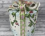 Gift Wrapped Present Bow Round Ceramic Cookie Jar International Art Handpainted