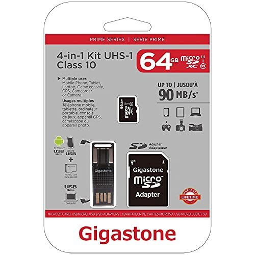 - Gigastone GS-4IN1600X64GB-R Prime Series microSD Card 4-in-1 Kit (64GB)