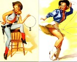 The product is a lot of 2 6"x4" canvas postcards featuring reproductions of Gil Elvgren's 1994 sexy pin-up art. The postcards were manufactured in the United States. This collectible set would be a great addition to any pin-up art enthusiast's collection, showcasing the iconic and alluring style of a bygone era with a contemporary twist.