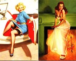 The product is a lot of 2 6"x4" canvas postcards featuring reproductions of Gil Elvgren's 1994 sexy pin-up art. The postcards were manufactured in the United States. This collectible set would be a great addition to any pin-up art enthusiast's collection, showcasing the iconic and alluring style of a bygone era with a contemporary twist.
