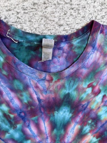 - Gilden Women’s Purple Green Blue Spiral Ice Tie Dye Short Sleeve Shirt Size 2XL