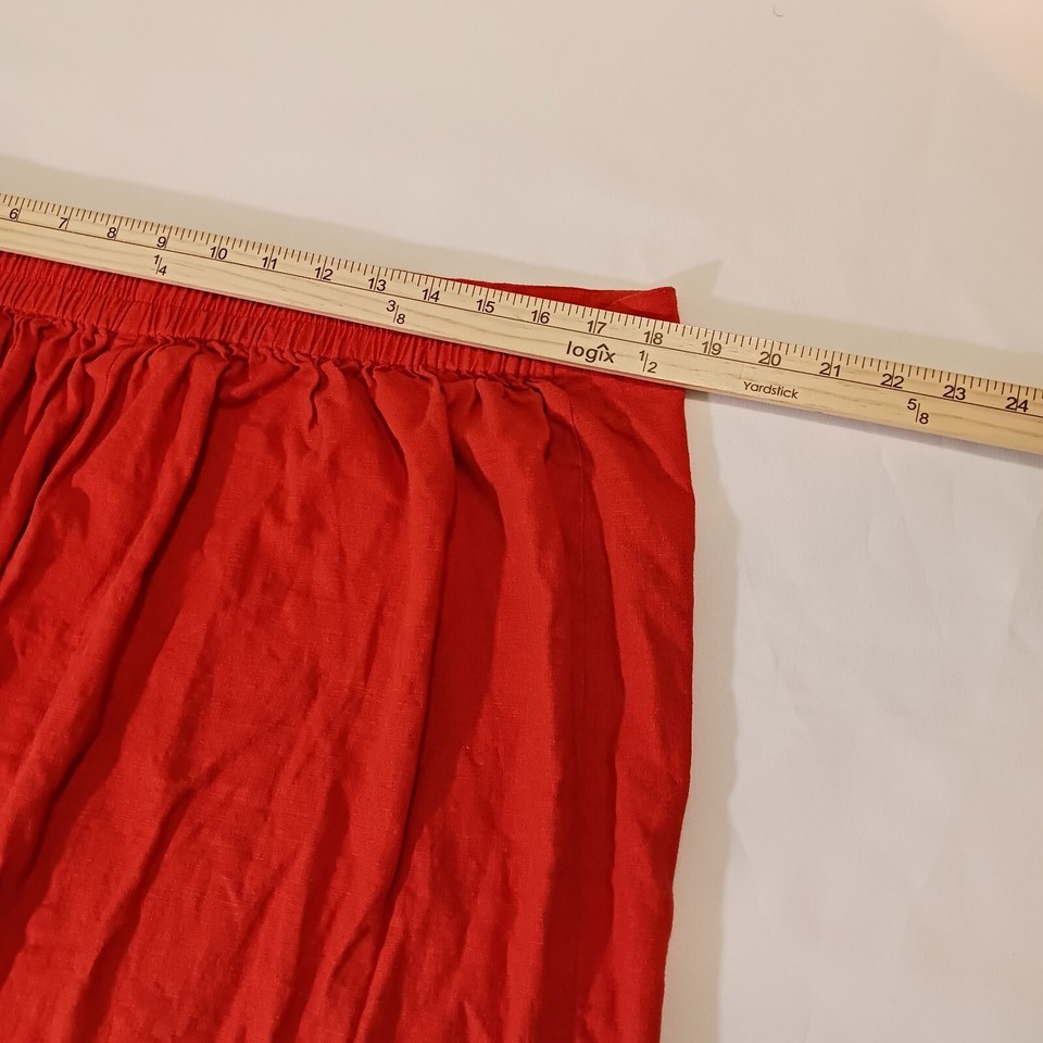 Elevate your wardrobe with this stunning orange skirt from Giorgio Fiorlini Collection's Plus Collection. Expertly crafted from a blend of Rayon and Linen, this straight and pencil skirt is designed to flatter your curves and make you feel confident. It features a zip closure and has a measured waist of 33 inches, suitable for those who wear a size 22.