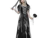 If you've got a little girl who loves horror movies and other gothy things, this may be the perfect costume for her! Black dress with tattered grey overlay on the skirt with similar colors on top. Comes with the dress and veil.