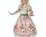 A beautiful vintage version of the classic storybook character. Lovely white satin dress with floral print trimmed with lace and dark green accents. Shoes not included.