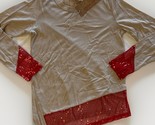 - Girls Christmas Shirt Party Tee Size 4-6 Y Beige Long Sleeve Red Sequins Bling