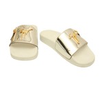 - Giuseppe Zanotti Brett Logo Silver Leather Zip Slides Sandals Shoes size 39