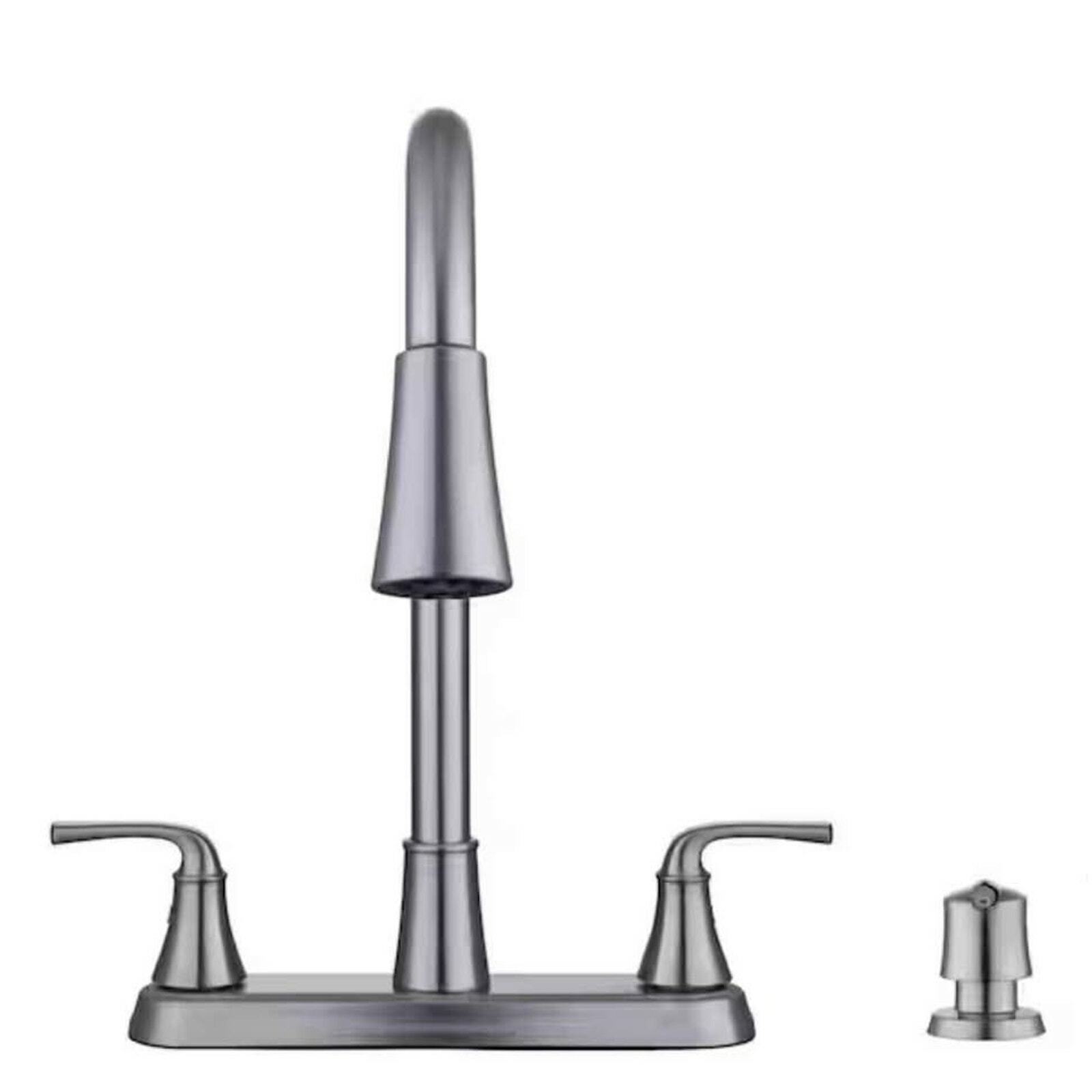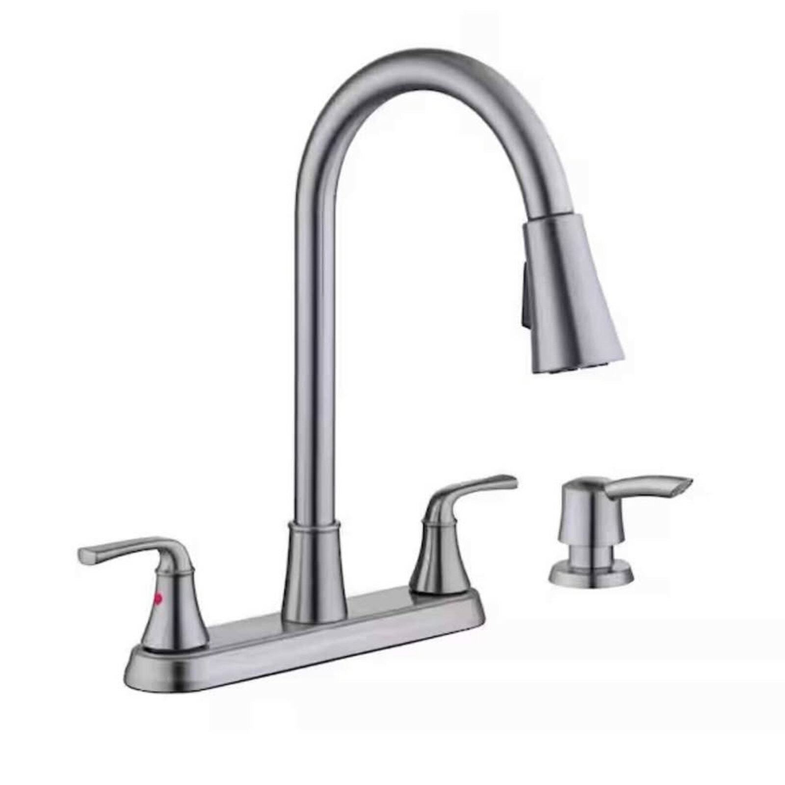 - Glacier Bay Sadira Double Handle Pulldown Kitchen Faucet with Soap Dispenser