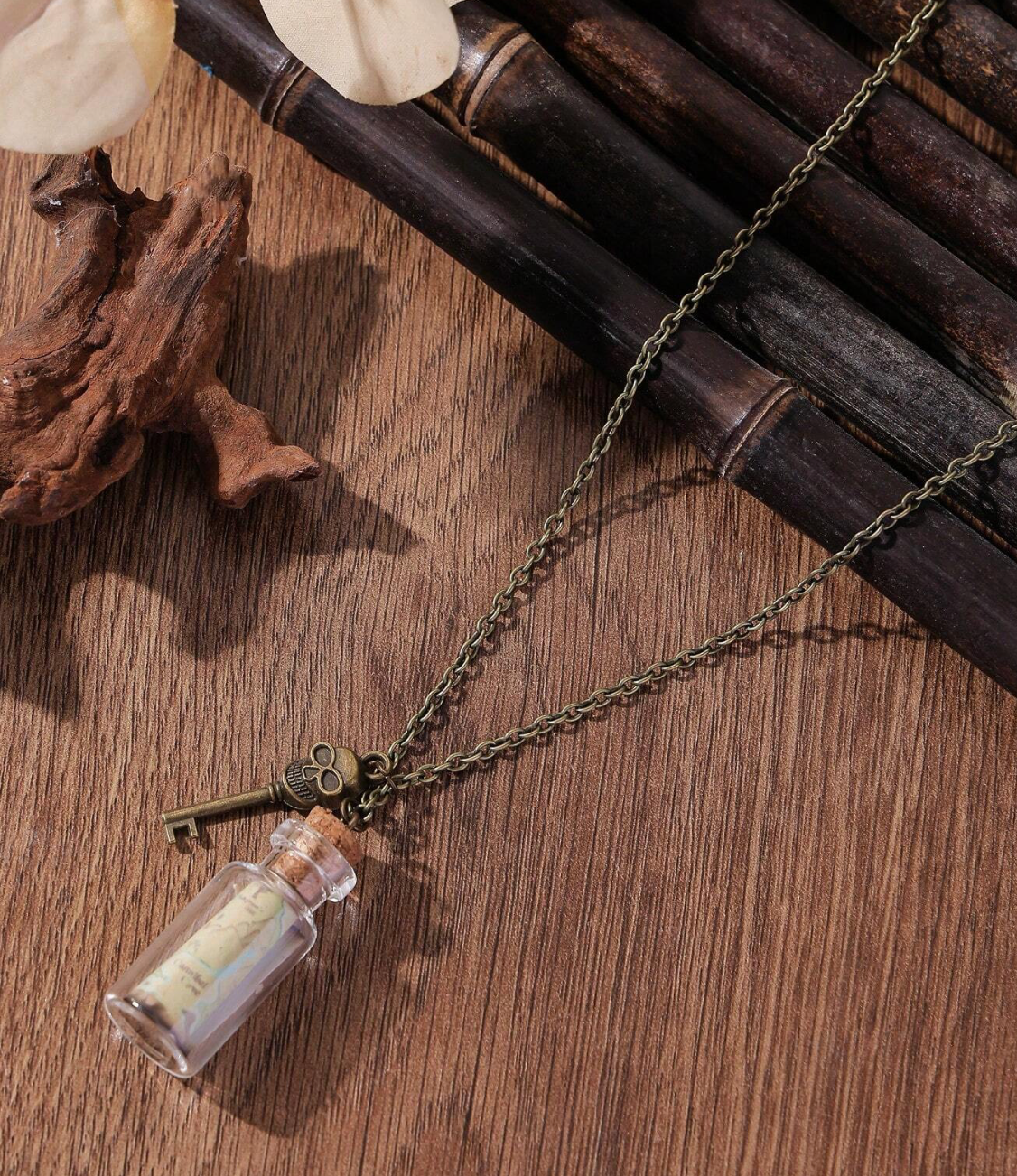 - Glass Bottle TREASURE MAP Pirate Necklace ✩ Shipwreck Charm Cosplay Jewelry!