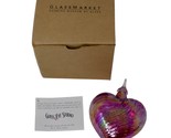 This Glass Eye Studio Seattle Handmade Iridescent Rainbow Swirl Heart Ornament is a beautifully crafted piece of art glass. Standing at 3.5 inches in height, this ornament is a unique and handmade collectible.