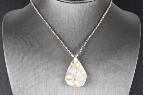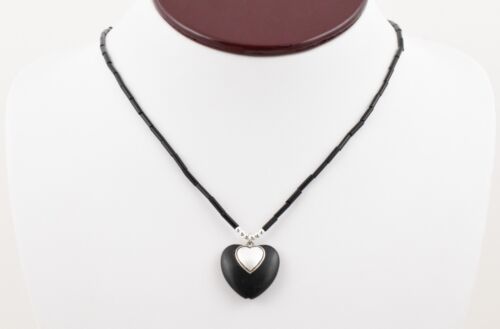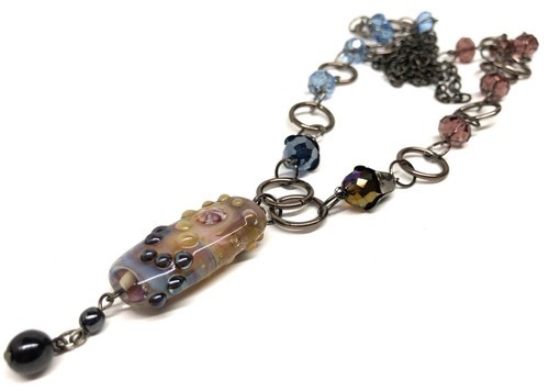 Glass lampwork bead & black stone necklace 13-15"+ strung on fine wire unmarked