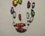 - Glass lampwork bead & black stone necklace 13-15"+ strung on fine wire unmarked