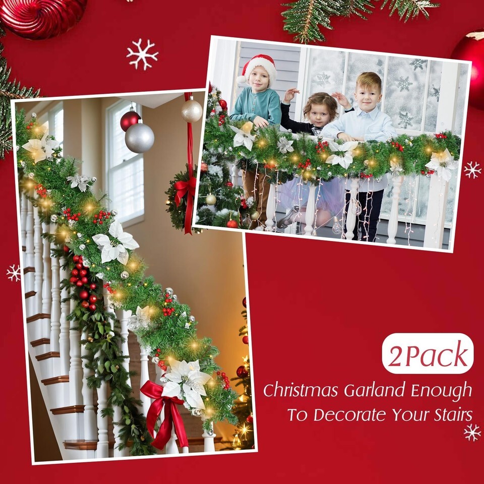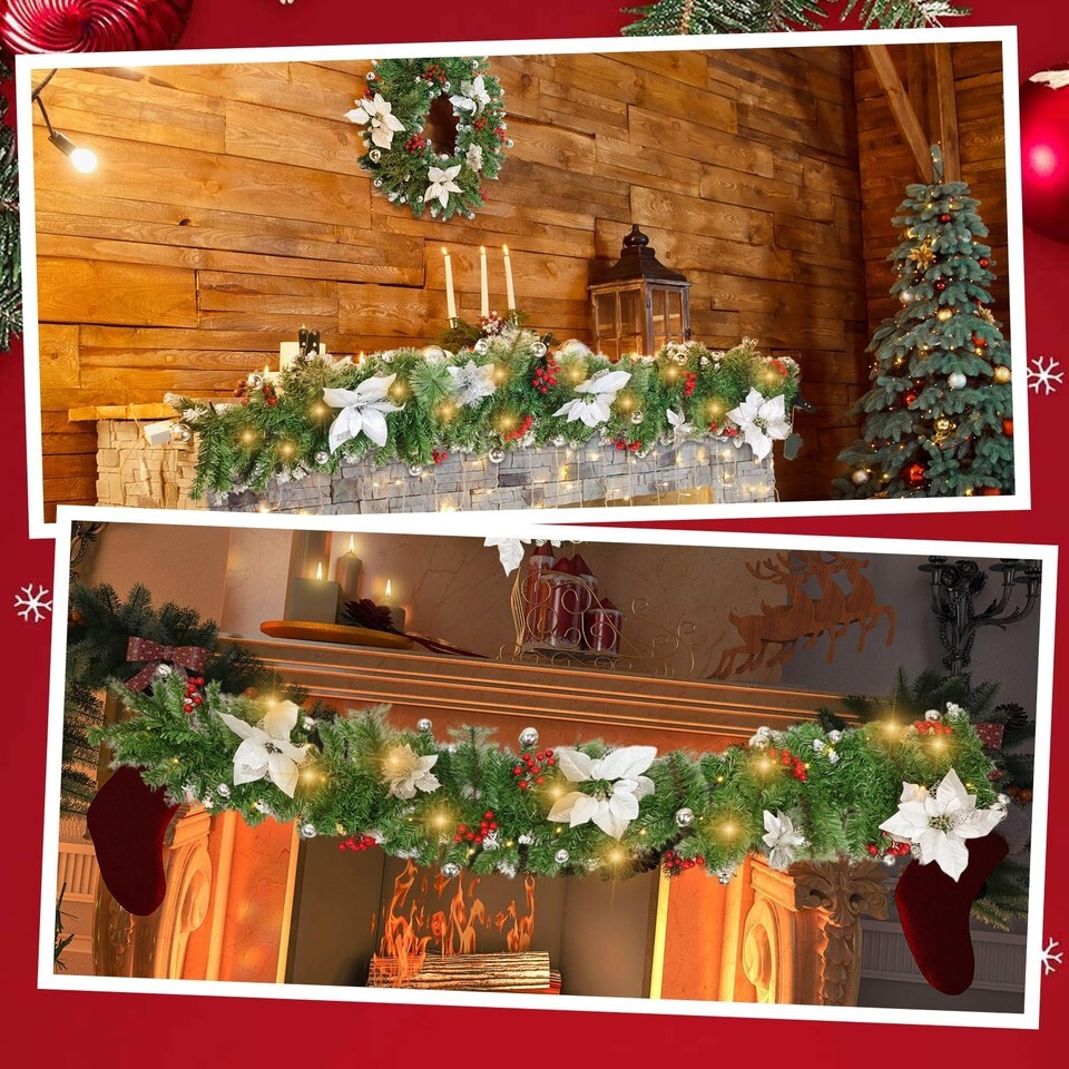 Ideal for Any Christmas Occasion: the lighted artificial Christmas garland is the ideal addition to the upcoming holiday season as a classic hanging Christmas decoration; And it's the ideal addition to any home's decor; Decorate your holiday party with this lovely and natural garland; Ideal for bedrooms, gardens, balconies, swing stands, doors, table centerpieces, and a variety of other uses