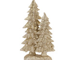 Add a dazzling touch of winter magic to your holiday d cor with this set of glittered Double Tree figurines. Featuring two layered pine trees standing side by side, these resin accents are coated in sparkling gold glitter for a glamorous seasonal statement. Perfect for tabletops, mantels, or holiday vignettes, they bring shimmer and charm to any festive setting.