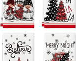 Gnome Truck Merry Christmas Kitchen Towels Dish Towels, 18X26 Inch Holiday Believe Xmas Tree Winter Decoration Hand Towels Set of 4
