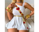 The costume also includes matching gold wrist cuffs, completing your heavenly look. Crafted with soft, stretchy fabric, it?s both comfortable and figure-hugging?perfect for dancing, photos, or adding a little love-inspired flair to any party or cosplay event.