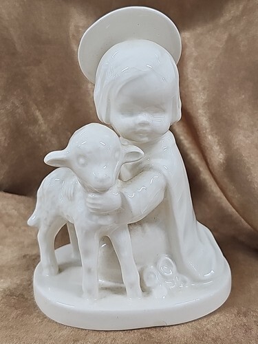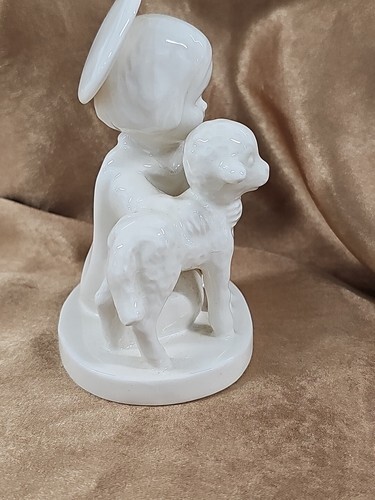 - Goebel Figurine Angel and Lamb West Germany HJ19 Soft White Glazed Bisque 4 Inch