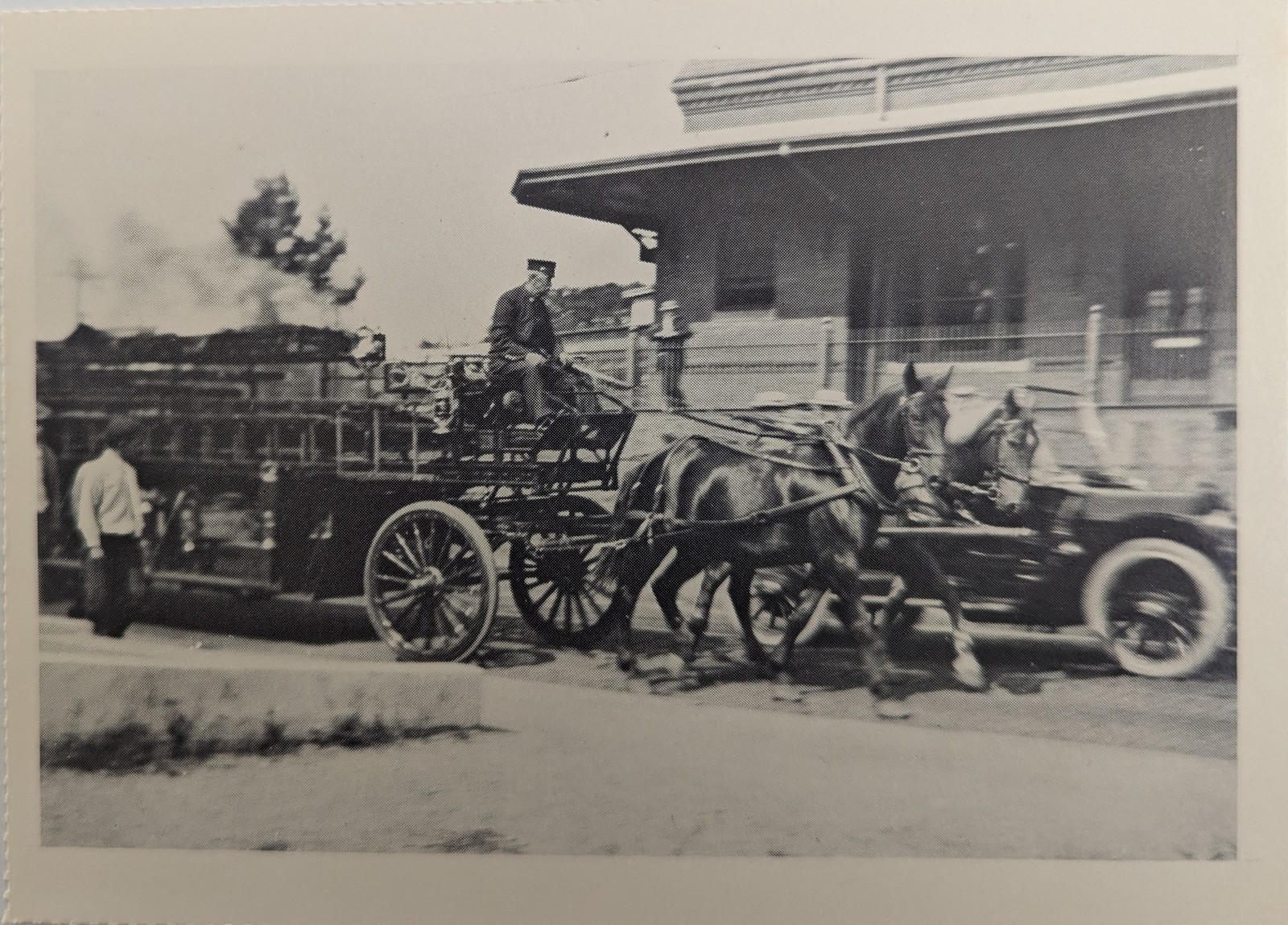 Going To The Fire Fire Truck B & W Post Card