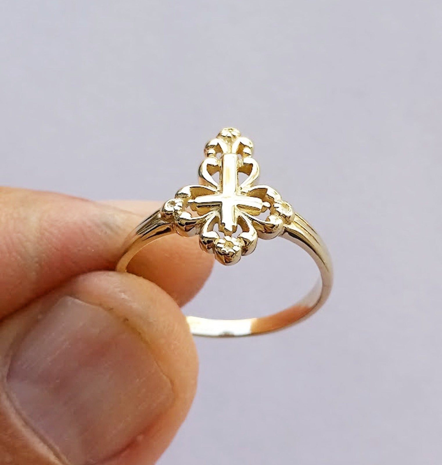 - Gold Cross Ring, Yellow Gold Cross Ring, Dainty Cross Ring, Gold Cross Jewelry,