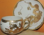 - Gold Dragonware Cup & Saucer 4.5" Moriage porcelain Hand Painted Japan c1930