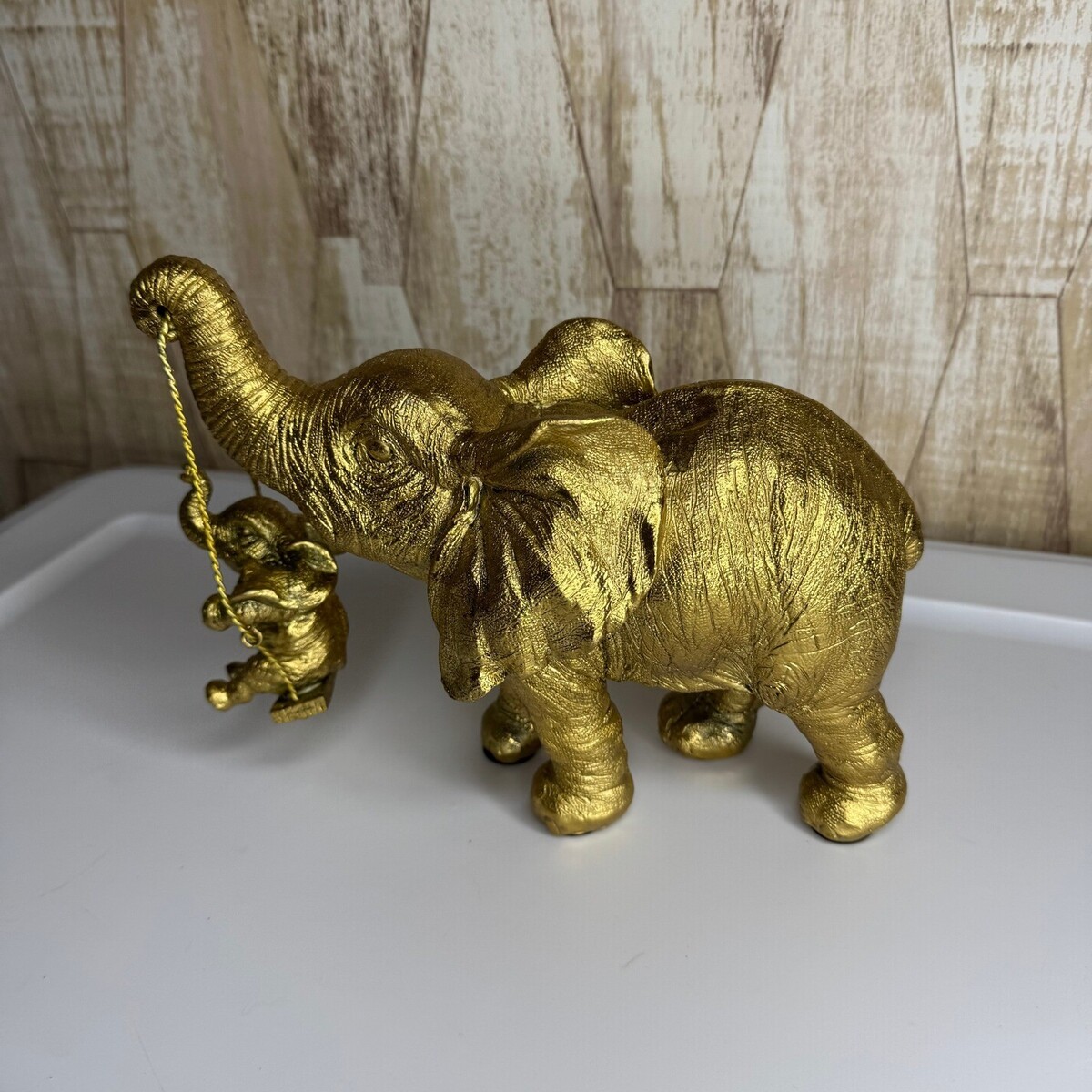 - Gold Elephant Mother Baby Swing Figurine Statue Home Decor Accent
