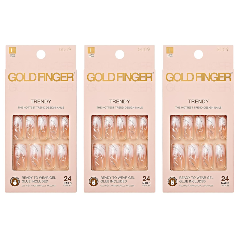 Gold Finger Gel Glam Design Nails (3 PACK)